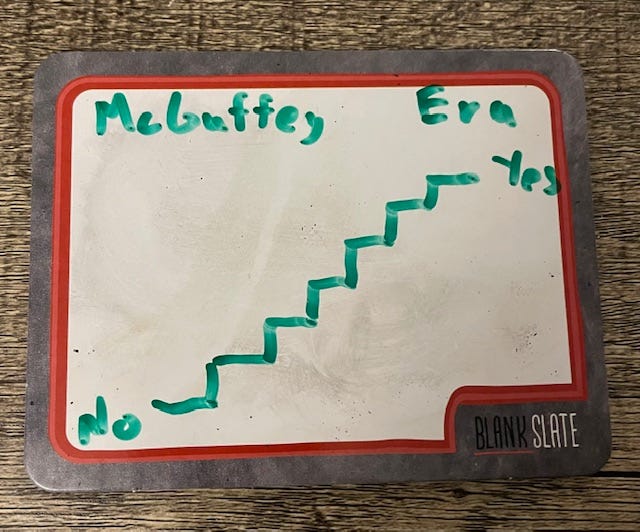 The most popular of these books were the McGuffey Readers. Instead of using one book to learn to read, now there were seven. (As an added bonus, the textbook publishers discovered they could make more money by selling six or seven books to a school rather than just one or two!)