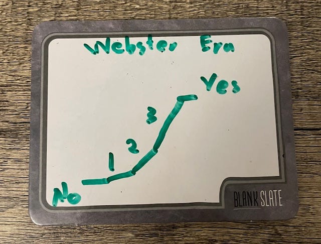 Next was the Noah Webster era. This is the first time that reading instruction started using multiple books. The first book in the series emphasized the ABCs and letter sounds, along with lists of two, three, and four syllable words covering a variety of spelling patterns. The second book was about grammar (according to Shanahan it didn’t sell well), and the third featured a variety of important speeches and other texts.