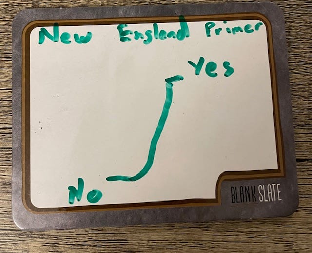The first evolution was the New England Primer, which offered reading instruction over 90 pages. It sold millions of copies and started with the alphabet and nursery rhymes, lists of vowels and syllables, simple short texts, and then eventually turned to more complex text.