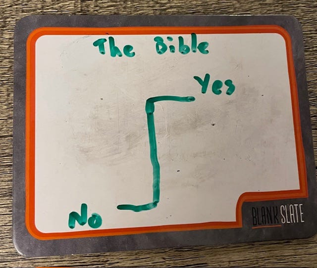 But the Bible is hard to read. When I was a kid, I thought it would be a fun challenge to try to read the whole thing cover to cover. I think I got to page 11 before giving up. Nowadays, there are programs you can follow to cover the full book in one year, but even that is a serious commitment. The point is, it would be a hard book with which to learn to read. Back in that era, it was an immediate and steep climb to go from not reading to reading.