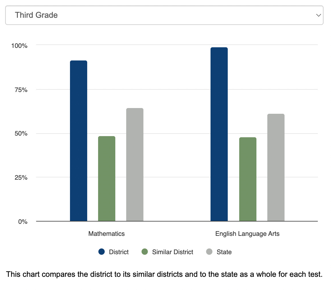 Districtwide, that’s 198 out of 200 students who scored proficient on the state’s third-grade reading test (99%). These are outstanding results, and they come from a public school district where 99.8% of students qualify as economically disadvantaged.