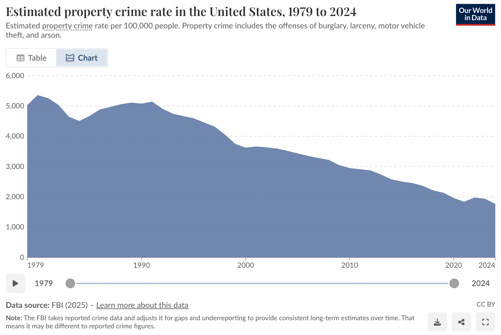 Property crime, including burglary, theft, and arson are down by even larger amounts.