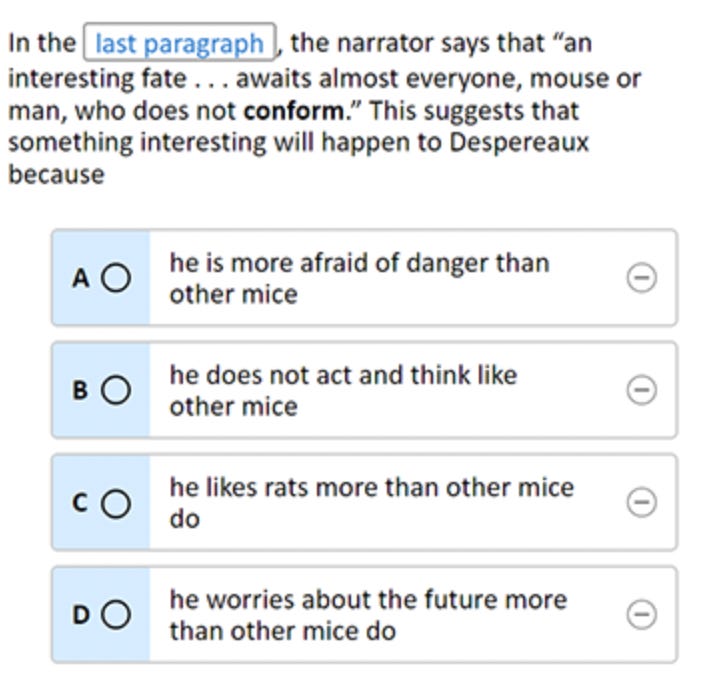 On the 2024 NAEP exam, 4th graders were asked to read a short passage from the book The Tale of Despereaux by Kate DiCamillo.